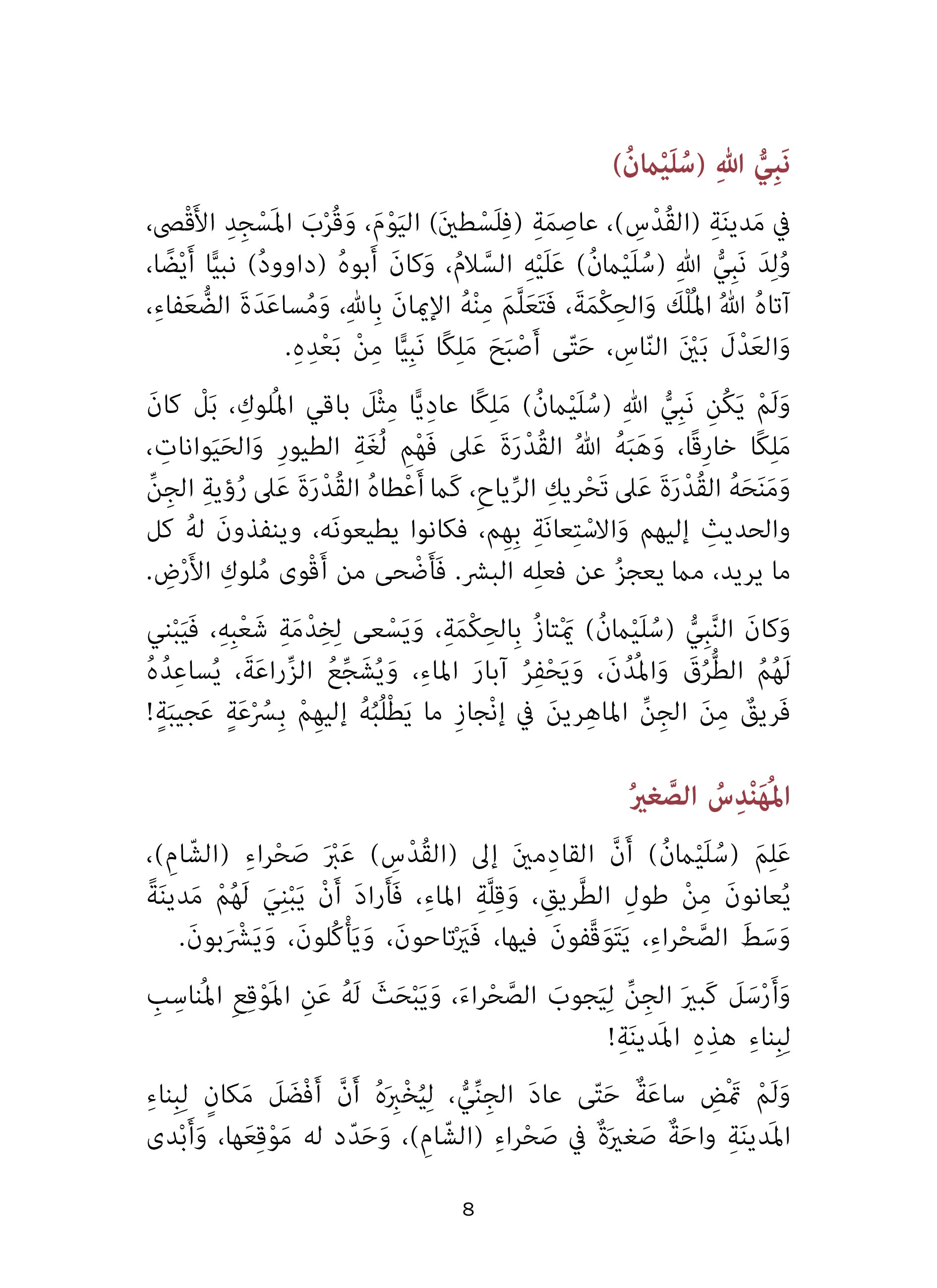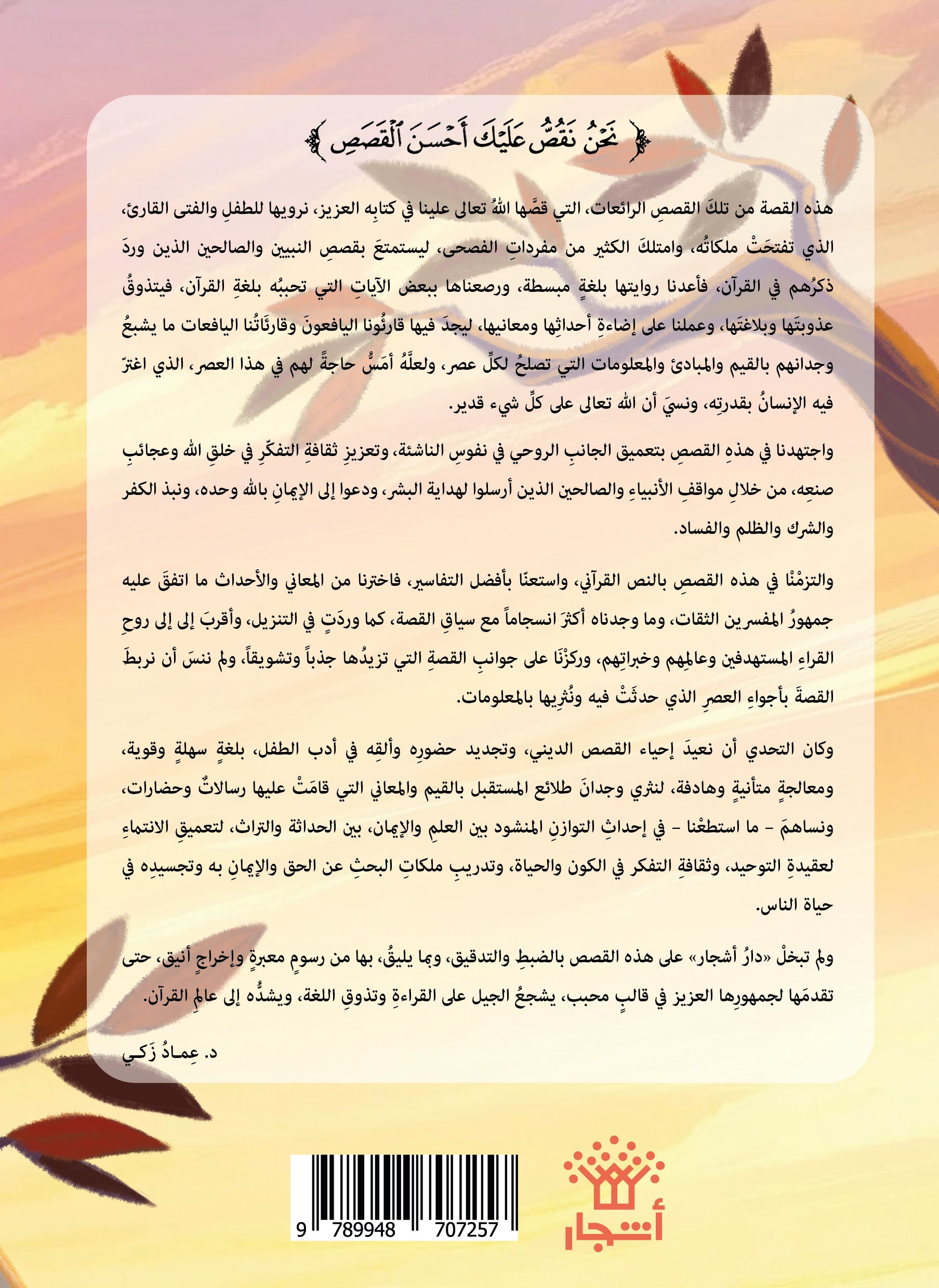 هذه القصة من تلك القصص الرائعات، التي قصّها الله تعالى علينا في كتابه العزيز، ونرويها للطفل والفتى القارئ الذي تفتحت ملكاته وامتلك الكثير من مفردات الفصحى، ليستمتع بقصص النبيين والصالحين الذين ورد ذكرهم في القرآن، فأعدنا روايتها بلغة مبسطة ورصعناها ببعض الآيات التى تحببه بلغة القرآن. واجتهدنا في هذه القصص بتعميق الجانب الروحي في نفوس الناشئة وتعزيز ثقافة التفكر في خلق الله وعجائب صنعه من خلال مواقف الأنبياء والصالحين الذين أرسلو لهداية البشر، ودعو إلى الإيمان بالله وحده، ونبذ الكفر والشرك والظلم والفساد.إصدار: 2026.