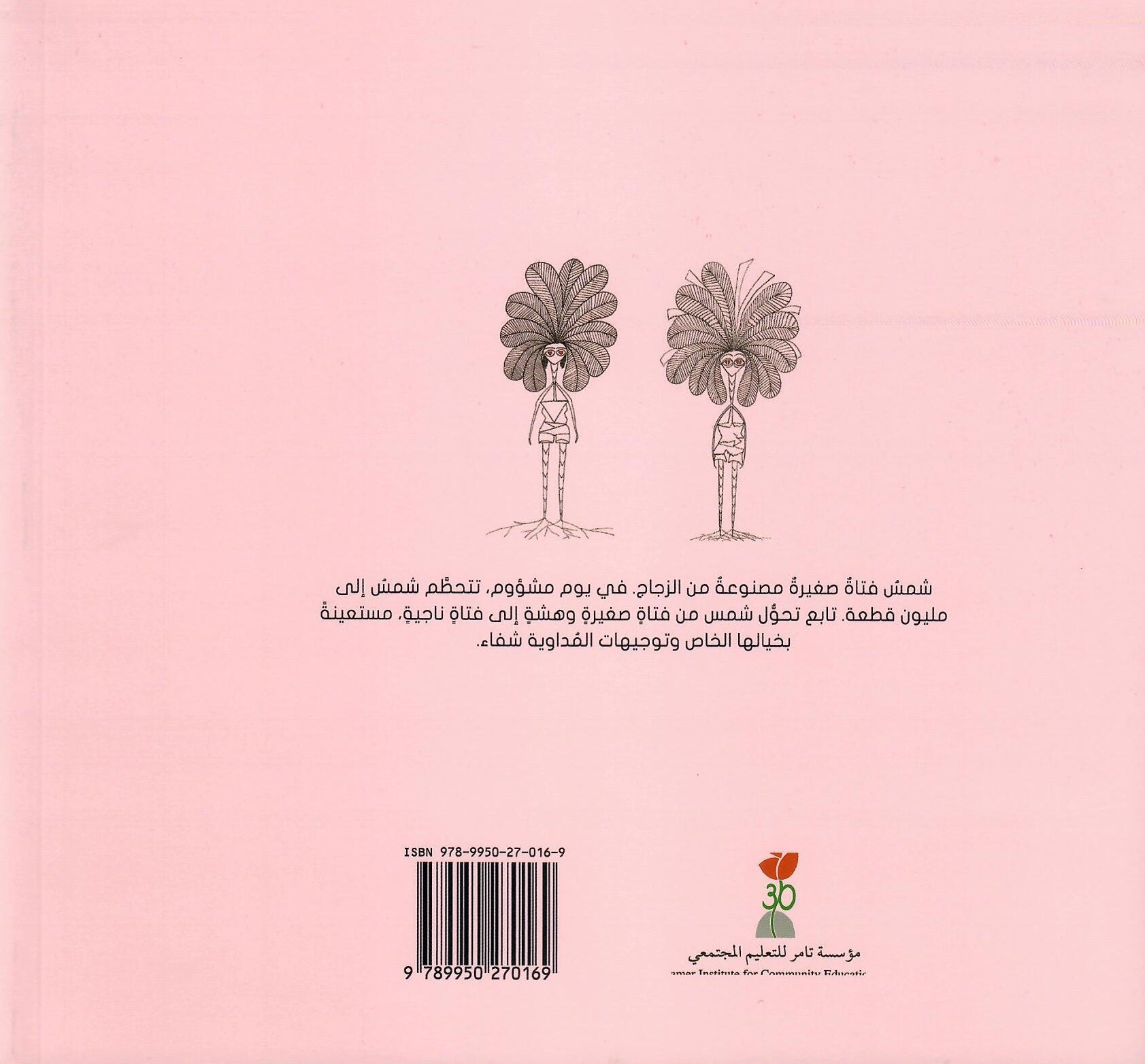 قصة "شمس"، من تأليف ورسومات سندس عبد الهادي، تسردُ حكايةَ فتاة حافلة بالألوان وتؤمن بكل ما هو حر ومرحٌ كروحها. لكن شمس مصنوعة من زجاج، وفي يوم مشؤوم، تنكسر إلى مليون قطعة بعد تعرض مسكنها إلى انفجار مدوي. هل ستنهض شمس من جديد لتسترجع ألوانها؟!